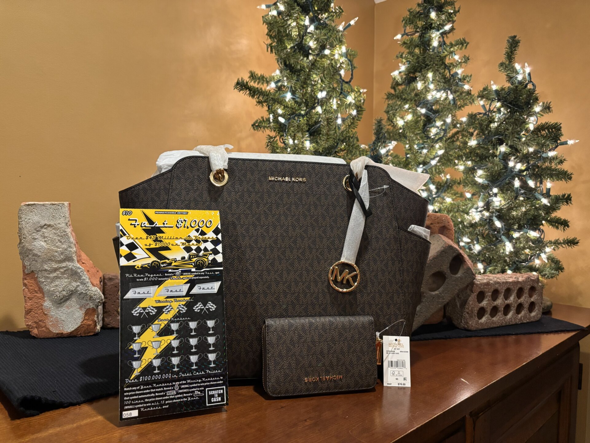 For your $10.00 donation you will receive 1 chance to win the Kors “Jacquelyn” & Lotto package.